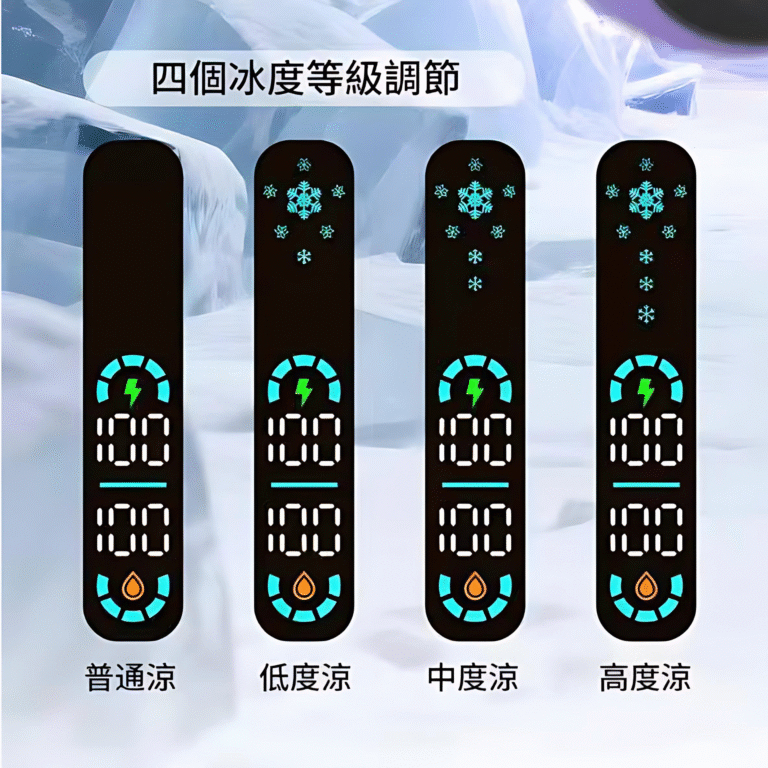 • 四檔涼度調節:可自由切換不同冰感強度,從微涼到極凍,滿足多樣化口味需求。